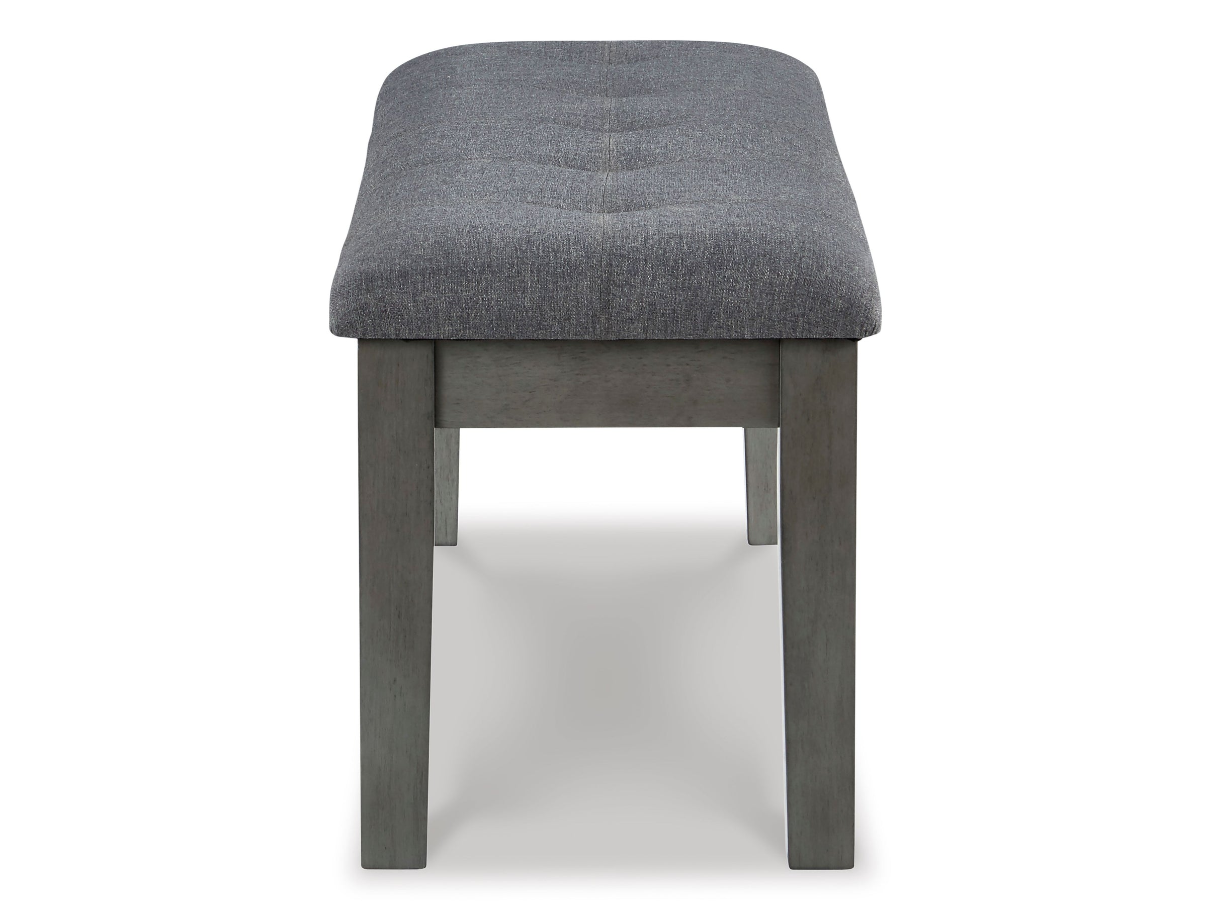 This dining bench embodies modern elegance with its sophisticated two-tone gray design, blending contemporary style with a relaxed ambiance. The cushioned foam seat, upholstered in a textured gray fabric, complements the antiqued gray finish beautifully, offering a refined and adaptable seating solution. Crafted from solid wood and expertly upholstered, it brings timeless quality and understated luxury to your dining space.